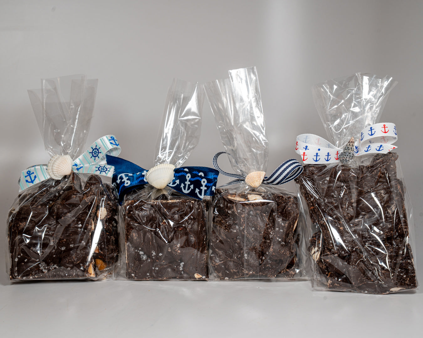We have paired our delicious dark chocolate with crunchy almonds and added a sprinkle of sea salt to really make the flavors pop. The dark chocolate sea salt almond bark is available in a lovely gift box, with a weight of 10 ounces and finished with ribbon and decorated with a real sea shell. Also available in a 5 ounce bag. Ribbon colors and styles will vary. This is the perfect gift for a true chocolate lover.